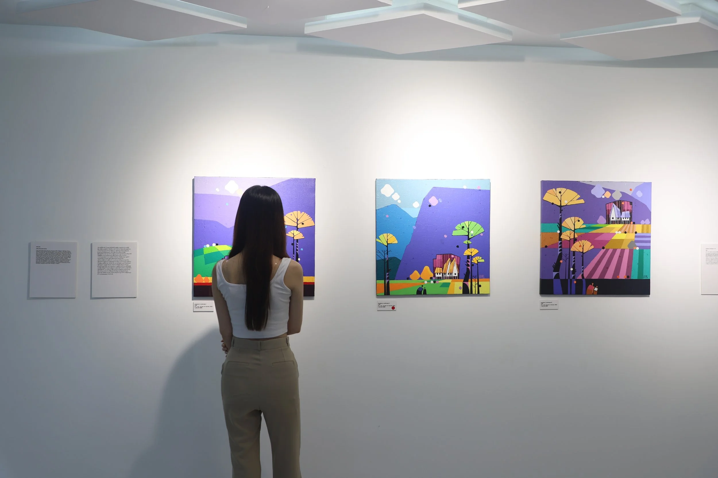 Featuring 5 most notable artists, Win Pe Myint, Zaw Win Pe, Min Zaw, Ba Khine and CNK (Chan Nyein Kyaw), the “Landscapes ≈ Mindscapes” exhibition invites the visitors to step into the hybrid world of the places you may be familiar with in the real world, mixed in with artists’ imaginations, expressions, living experiences, and distorted realities in their artworks. Through the works of this exhibition, we venture into each individual artist’s mind, investigating what informs their practices, and their intimate conversations between themselves and their canvases. The symbol “approximately equal (≈)” between the words landscapes and mindscapes in the exhibition title suggests how the landscape works in this exhibition relates to the artists’ mental landscapes, influenced by their identities, personal memories and state of beings.